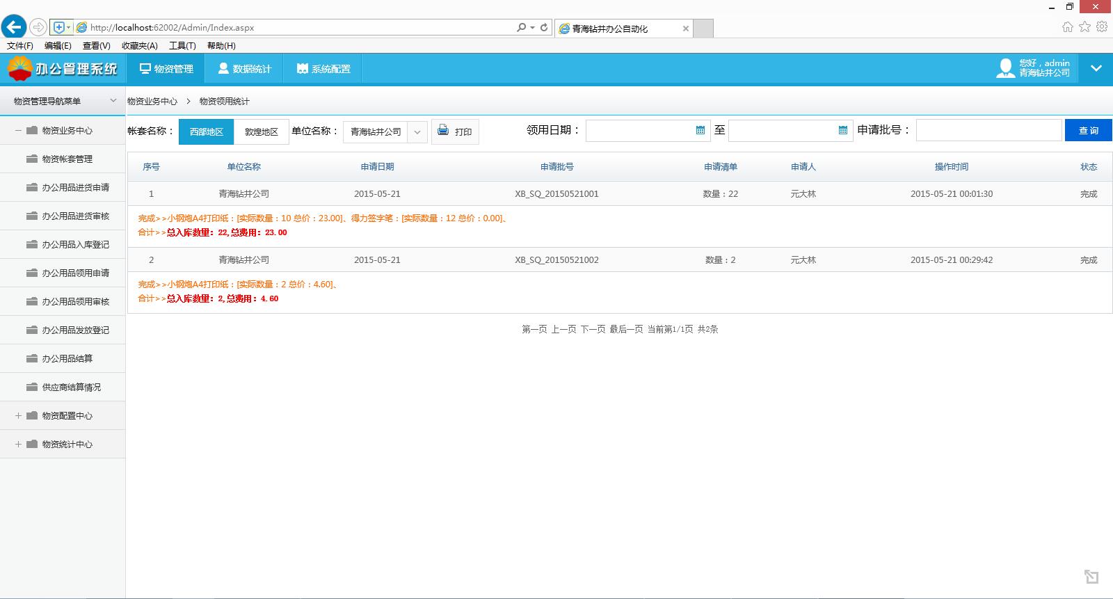 物資領用管理系統(tǒng)